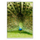 Eine exquisite und perfekte Darstellung der Pfauenfarben. Ein stolzer und wunderschöner Pfau zeigt seine herrlichen Federn im Springtime, liebevoll für jeden, der phantastische Farben und wunderschöne Vögel schätzt. Vollständig anpassbar für Ihre eigene Nachricht.