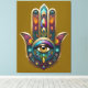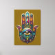 Pfauenfarben Hamsa mit goldenem dritten Auge Leinwanddruck