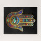 Pfauenfarbene Blumenblüten Hamsa Grünes Drittes Au Puzzle