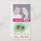 Pfauenfeather Schmuckherz Hochzeit Save the Date Foto-Karte, mit einer eleganten Pfauenfeder in Limonem und smaragdgrünem, blauem, türkisfarbenem und fuchsienfarbenem Rosa, einem magentafarbenen Rosa und einer Illustration eines himmelblauen Schmuckdiamanten mit goldener Kontur und Sträsen auf elholzem, ecru Damast. Ein modernes, stilvolles Design mit klassischem Design und einer leichten Touch Vintag. Beachten Sie, dass das Herz Diamant Juwel gedruckt ist und nicht ein echter Kristall, so sind die Schichten. Dieses Design kann auch für andere Gelegenheiten wie Geburtstage, Verlobungen oder Jahrestage verwendet werden.