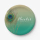 Pfauenfeathers, Mason Jar & String Lights Party Teller. Machen Sie den Hintergrund zu einer beliebigen Farbe. Matching-Elemente verfügbar. Anpassen mit jedem Text.