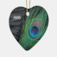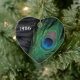 Einzigartiges Pfauenfedern Weihnachtsschmuck mit individualisierbarem Jahr. Der schwarze samtfarbene Hintergrund des Stilllebens macht die kräftigen Farben Grün und Blau der Pfauenfeder absolut lebendig und atemberaubend. Wenn Sie in diesem Jahr ein Pfauenweihthemem dekorieren, ist das wunderschön.