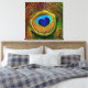 Eine gewickelte Leinwand mit einem atemberaubenden Nahaufnahmen eines lebendigen und wunderschönen, herzförmigen blauen Auges einer prächtigen türkisfarbenen und goldenen Pfauenvogelfeder. Ideal für Vogelliebhaber zu sagen: I Liebe Peacocks!