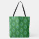 Gedruckte Tasche in einem Pfauenfedertextil, ausgeführt in Adobe Illustrator und Fotoshop - hellgrüne Federn, mit einem Auge in den Farben Grün, Kobalt Blau und Aqua, auf einem tiefen smaragdgrünen Hintergrund