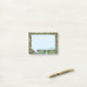 Pfauenfedern & Kalligraphie auf hellblauen Post-it Klebezettel