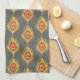 Pfauenfedern, Senfgelb auf Grau / Grau Küchentuch