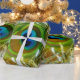 Glamouröses Urlaubspapier mit schöner Pfauenfeder, Silberfräse und glitzerndem Weihnachtslicht