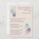Einladung mit lila und aquamarinen Pfauenfedern. Kann für Hochzeiten oder Brautduschen verwendet werden. Karo unten die passenden Artikel aus!