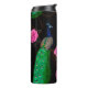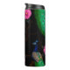 Pfauenvögel, die auf Ästen und rosa Kamelien-Blume herumpfauern, dieses Muster wird in Fotoshop handgezeichnet.
