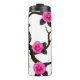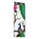 Pfauenvögel, die auf Ästen und rosa Kamelien-Blume herumpfauern, dieses Muster wird in Fotoshop handgezeichnet.