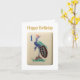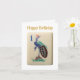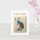Die Innenseite der Karte enthält die folgende Beschreibung: "Das Bild ist von einer 1 Bambus-Anzug-Kachel aus einem Mah-Jong-Set aus Knochen und Bambus (zusammendovettiert) und misst nur 1,8 cm x 2,5 cm (0,7" x 1"). Es wurde wahrscheinlich in China zwischen 1920 und 1940 gemacht. Der Anzug von Bamboos ist mit Fliesen von 1 bis 9 nummeriert. 1 Bambus und 9 Bambus sind "große" Fliesen, die mehr als die anderen "kleinen" Anzug-Fliesen verzeichnen. Die 1 Bambusfliese zeigt unweigerlich ein Bild eines Vogels. Dieses hier zeigt einen Pfau, ein Symbol für Schönheit und Würde. Nur die besten Carver und Designer hatten die Aufgabe, solche Designs zu schaffen."
