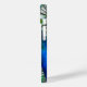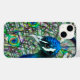Elektrischer Pfau mit Elektrifizierten blauen Federn expandierte, als er seinen blauen Kopf hochhielt und dich anschaut