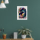 Poster mit einem Kunstdruck eines hübschen Pfaues, gezeigt mit einem weißen Imitat matt Look. Passen Sie dieses Objekt an oder kaufen Sie, wie es ist. Bild
