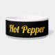 Pfeffer aus rotem Chili mit Flammenkreis. Benutzerdefinierte Hintergrundfarbe. Eigener Text.