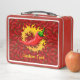 Roter Pfeffer aus Chili mit Flammenkreis über rotes Nahtloses Muster. Benutzerdefinierter Text auf beiden Seiten.