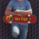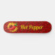 Roter Chili Pfeffer mit Flammenkreis auf herausnehmbarem nahtlosem Musterhintergrund. Eigener Text.