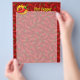 Pfeffer aus rotem Chili mit Flammenkreis auf nahtlosem Muster. Benutzerdefinierter Text auf beiden Seiten.