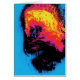 farbenfroher, knackiger Monsterkopf, der in den Staaten des Plastiks in einem blauen Meer lebt