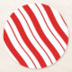Set von 6 WegwerfUntersetzer des runden Massenbrettes mit einem Bild der roten und weißen Pfefferminzstreifen. See quadratischen PlastikUntersetzer zusammenbringend. Sehen Sie die gesamte WeihnachtsUntersetzersammlung im FEIERTAGS-Abschnitt.