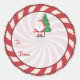 Pfefferminzbonbons Weihnachtsgeschenk-Aufkleber. Ideal für Weihnachtsgeschenke. Das Design besticht durch einen festlichen Hintergrund aus roten und weißen Pfefferminzbonbons. .Ein kreisförmiger Tag in der Mitte hat einen fröhlichen Weihnachtsmann und einen weihnachtlichen Baum, der hin und her hin- und herwindet und den Namen des Empfängers und des Textes trägt. Aufnahme, Textfarbe und Stil können im Menü 'Anpassen' geändert werden.