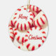 Helle rote und weiße Pfefferminzsüßigkeiten, mit Text "der frohen Weihnachten" auf der Front und "2011" und Namenstext auf der Rückseite, die besonders angefertigt werden kann, um Ihren Bedarf zu passen.