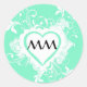 Pfefferminzgrün mit Monogramm Herz Runder Aufkleber
