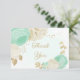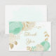Minze grün & weiße Blume mit goldenen Blätter Hochzeit danke Ihnen Karte. Die Einzelheiten des Glitzer werden simuliert.