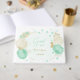 Pfefferminzgrün-weiße Blume mit goldenen Blätter Hochzeitsgast-Buch Die Glitzer-Details werden simuliert.