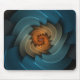 Copyright © 2008, Susan Wallace. Rasiermesser umrandete Spirale der klaren Orange auf einem strukturierten Türkisblauhintergrund.