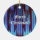 Die Blau beleuchteten façade Rohre des Rieger Organs im Rathaus, Christchurch, Neuseeland, sind der Hintergrund für die Wörter "frohe Weihnachten". Ein ideales Geschenk für einen Organisten oder ein Kirche Musiker und der, die zum Anzug besonders angefertigt werden können die Gelegenheit. Das Blau schaut besonders hübsch, wenn es in einem Weihnachtsbaum gehangen wird.