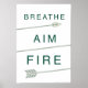 Karo aus dieser Grafik des grünen Pfeils mit den Worten "Breathe Aim Fire", die zwischen fliegenden Pfeilen geschrieben sind.