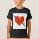 Ein rotes Herz, durchbrochen von einem Pfeil mit einem Single Tropfen Blut