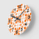 Diese Wanduhr hat ein modernes Design von Pfeilen in zwei Orangetönen.