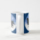 Medienillustration eines hohen Pfeilers Tretens Waliser, voll vom Geist. Sein Hals wird in seinem Kopf gewölbt, der an einer spielerischen, boshaften Art gespannt wird. Er hat einen Mantel des blauen Schwarzen und steht heraus gegen einen blauen Himmel mit Schneeflocken um ihn. Pony ist auf beiden Seiten von der Tasse in einem Kreisbereich, der durch ein dunkleres Blau gerahmt ist. Illustriertes ©T.A.Paxton von Starhorsepax Entwürfen. Power oben mit einem heißen Getränk von dieser Tasse nach einer kalten Winterfahrt auf zu Pferde.
