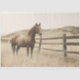 Eine Vintage sepiatfarbene Abbildung eines Pferdes, das frei auf der Strecke läuft und den Geist der wilden, offenen Ebenen einfängt. Die sanften, verblassten Farbtöne und die raue Landschaft erinnern an ein zeitloses, klassisches Western-Gefühl, das sich ideal für alle eignet, die rustikale und historische Tierkunst Lieben.