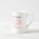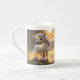 Dieses bezaubernde Bild zeigt einen zarten Becher mit Knochen, der mit einer Abbildung des chinesischen Tierpferdes geschmückt ist. Das Pferd ist niedlich und skurril dargestellt, mit seinen einzigartigen Merkmalen, die auf der anderen Seite der Tasse aufgelistet sind. Die Tasse ist wunderschön mit aufwändigen Details gestaltet, was sie zu einer charmanten und sinnvollen Ergänzung zu jeder Sammlung macht.