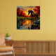 Pferd durch Sonnenuntergang im Herbstwald Poster