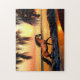 Das braune Pferd läuft entlang einer Meereswellen, Sonnenaufgang oder Sonnenuntergang