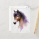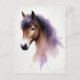 Diese Pferde-Postkarte zeigt ein elegantes Aquarellbild eines Pferdes, das die Anmut und Schönheit dieses majestätischen Tieres mit weichen, fließenden Pinselstrichen feststellt. Die ausdrucksstarken Augen und die zarten Gesichtszüge des Pferdes werden durch ein warmes, natürliches braunes Fell unterstrichen, das wunderschön kontrastiert mit einem auffallend lila gefärbten Mane, das sich nahtlos in den luftigen, abstrakten Hintergrund einfügt. Feine Lavendel- und Violett-Farbtupfer verleihen dem Kunstwerk eine traumhafte, ätherische Qualität und sorgen für ein entspanntes und elegantes Ambiente. Ideal für Reitfreunde und Tierfreunde! Die Postkarte ist anpassbar; fügen Sie Ihren eigenen Text hinzu!
