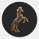 Pferd mit Weihnachtsmannmütze und Weihnachtsbeleuc Runder Aufkleber