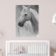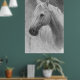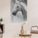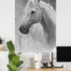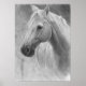 Ein Pferdegesicht, das zeichn aus Graphitstift auf Papier.