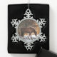 Dieser Zinnschmuck mit einem goldbraunen Pferd, das sich unter dem Schnee gefallene Äpfel vor einem Hintergrund kahler Hügel ansehen kann. Das wird schön an deinem Weihnachtsbaum hängen!