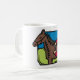 Ein Bauernmädchen macht sich auf ein Pferd gefasst. Dieses Design sieht auf dieser Tasse wirklich effektiv aus