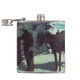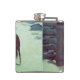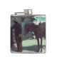Flasche mit Frederic Remington Ölgemälde The Belated Traveller (1906). Ein Cowboy klopft inmitten eines Winterschnees an eine Kabinentür. Er hält die Herrschaft an einem braunen Pferd an seiner Seite. Ein perfektes Geschenk für Pferdefreunde und den Alten Westen.