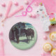 Teller mit Frederic Remingtons Ölgemälde The Belated Traveller (1906). Ein Cowboy klopft inmitten eines Winterschnees an eine Kabinentür. Er hält die Herrschaft an einem braunen Pferd an seiner Seite. Ein perfektes Geschenk für Pferdefreunde und den Alten Westen.
