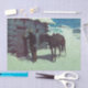 Tissue mit Frederic Remingtons Ölgemälde The Belated Traveller (1906). Ein Cowboy klopft inmitten eines Winterschnees an eine Kabinentür. Er hält die Herrschaft an einem braunen Pferd an seiner Seite. Ein perfektes Geschenk für Pferdefreunde und den Alten Westen.