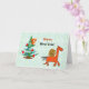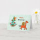 Lustiges orangefarbenes Pferd mit Eichhörnchen und Weihnachtsbaum