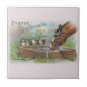 Vier Küken sitzen am Rand einer hölzernen Abflussrinne und passen ein Pferd auf, Wasser in dieser Vintagen Ostern-Postkarte ab 1908 zu trinken.