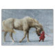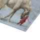 Ein schönes Bild eines weißen Pferdes, das von einem Mädchen in einem roten Mantel während eines Schneesturms geführt wird, schmückt dieses Schneidebrett. Ideal für sich selbst oder als Geschenk.