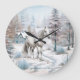 Pferd Winter Szene Schneewald Weihnachten Große Wanduhr